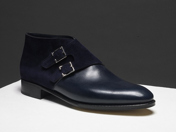 JOHN LOBB一直以來皆以其精湛工匠純手工藝以及頂級皮質切割染色處理為最大特色,現代摩登紳士們除了基本款小牛皮面設計鞋款外,更開始追求異材質拼接設計,而擁有百年製鞋工藝的JOHN LOBB巧妙運了用麂皮與小牛皮的拼接技法,搭配近幾年在台灣市場越來越受歡迎的孟克鞋,俐落地展現雅痞美學Look。孟克搭配性高,且對於腳背稍後的亞洲人來說,舒適度也大大提升,並更给人架式十足的形象,一直是男士皮鞋的主流款。