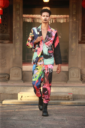 INF SS22 Translate. 觀落陰系列作品包含三大元素,包含與『魔法阿媽』一劇聯名的「卡通元素」、翻玩立體與平面的「視覺錯視元素」以及「原住民與林安泰的原生風貌元素」,INF將台灣原生風貌與動畫、藝術領域串連,幻化成為台北時裝週的伸展台 ,以服裝詮釋台灣的多元性。